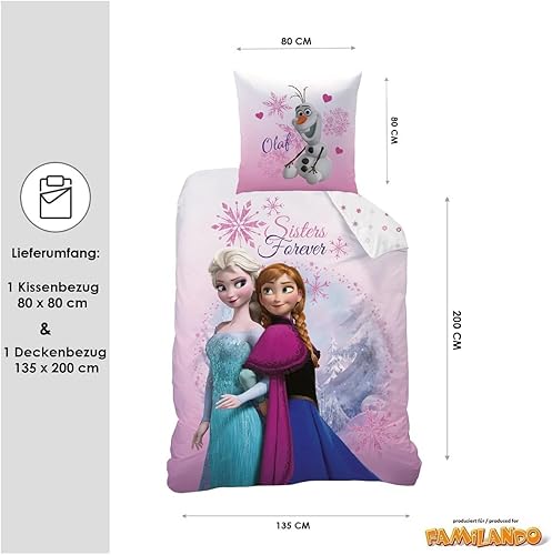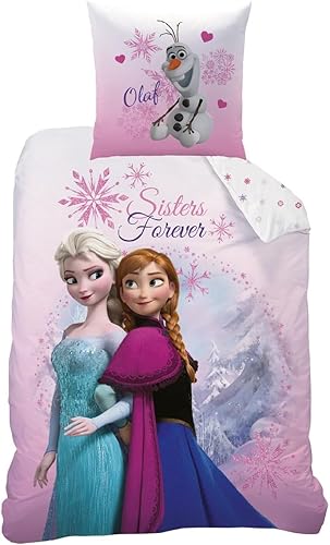CTI - Parure de lit - 43999 - Motif de La reine des neiges avec montagnes - Rose - 135 x 200 et 80 x 80 cm