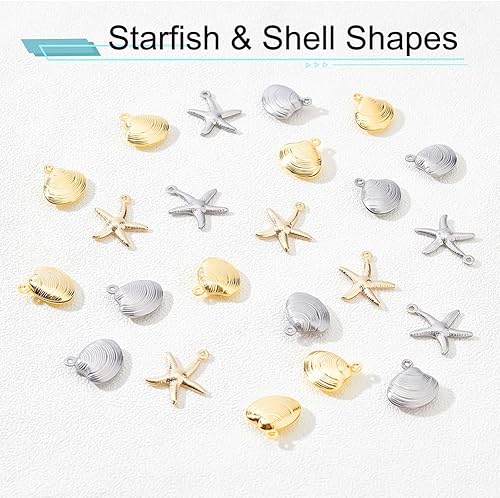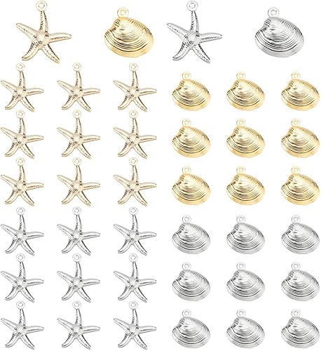 PH PandaHall 40PCS Breloques de coquillages étoiles de mer, 4 modèles Pendentifs de charmes de pétoncles en métal Coquillages Dangle Charms pour l'été Hawaii Boucle d'oreille Collier Bracelet