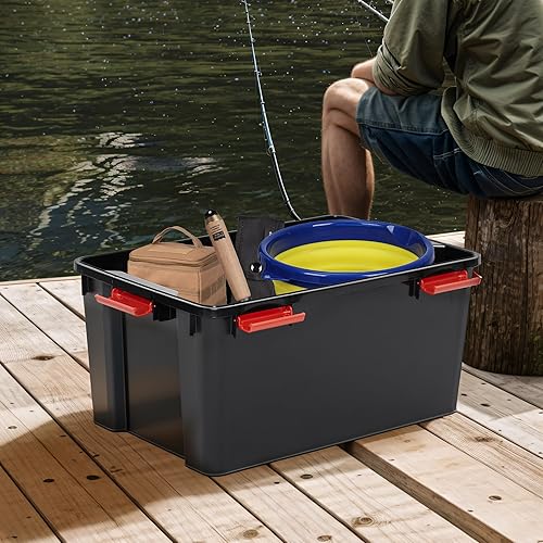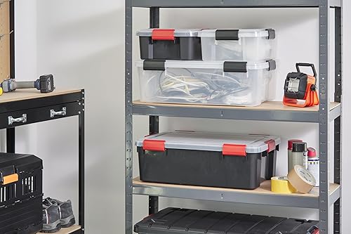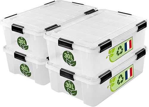 Iris Ohyama, Boite Rangement Hermétique Plastique, 30L, Lot de 4, Transparent, Couvercle, Joint Etanche, Clips de Fermeture, Empilable, pour Exterieur, Garage, Vetement, Anti Poussiere, WSB-30