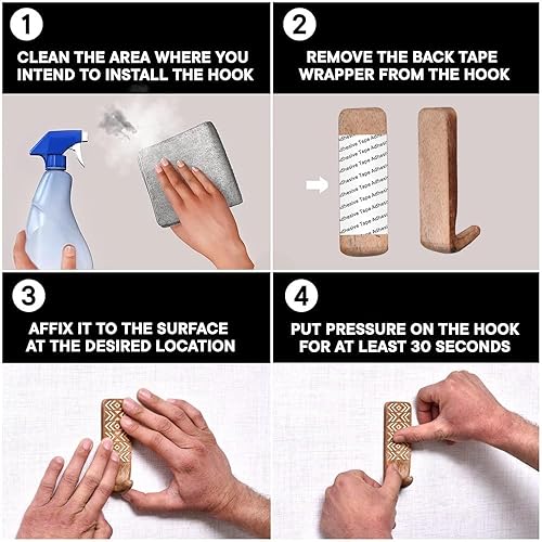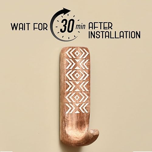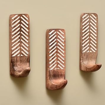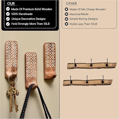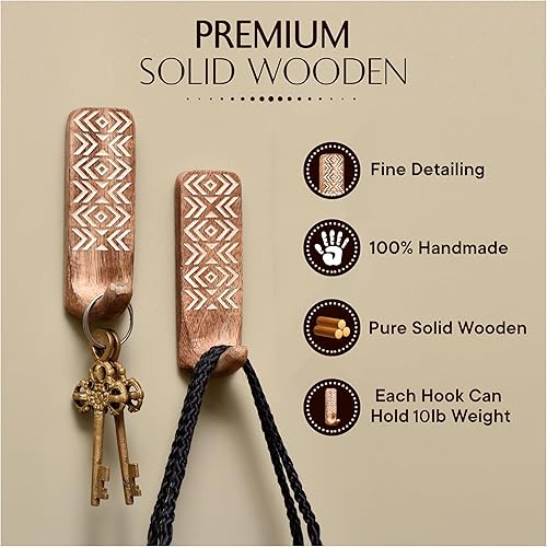 Indian Shelf Crochets muraux adhésifs décoratifs bohème en bois pour manteaux – 3 crochets 6 bandes – Imperméable – Porte-serviettes antirouille – Cintres sans perçage pour salle de bain et cuisine