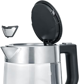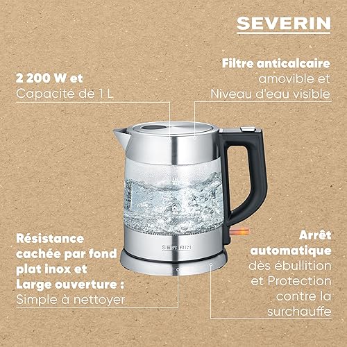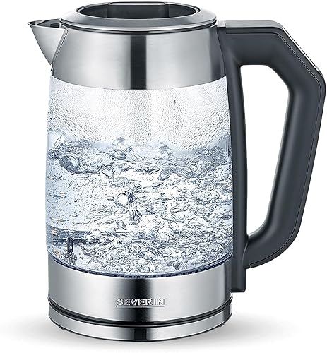SEVERIN Bouilloire en Verre 0,5L, 1 100 W, sans BPA, Filtre Anticalcaire Amovible, Ouverture à une main, Socle 360°, WK 3472, Acier Inoxydable/Noir.