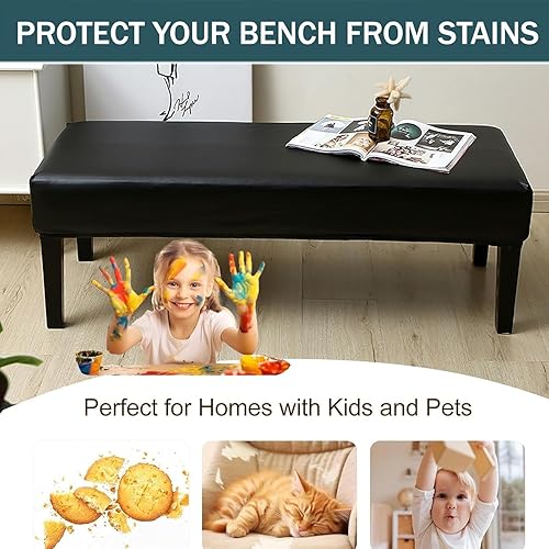 FZKun Housse de banc de salle à manger en cuir synthétique, extensible, imperméable, rembourrée, résistante aux taches et aux déversements, pour banc de salle à manger à coucher et cuisine (150 x 40 x