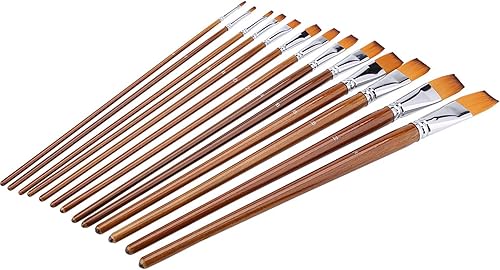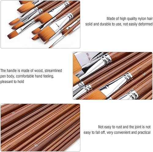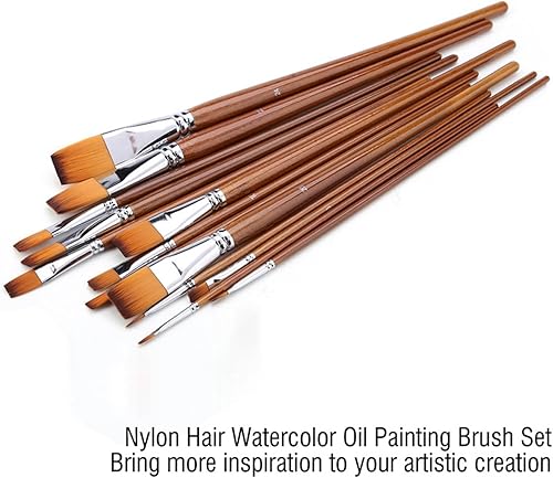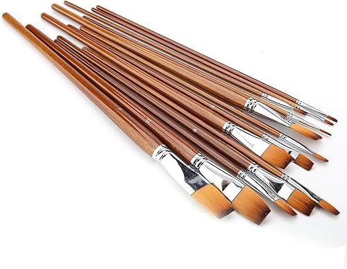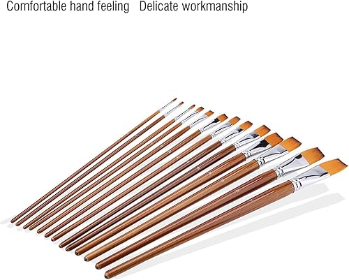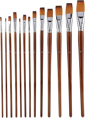 13Pcs Nylon Cheveux Aquarelle Peinture À l'huile Pinceau Manche en Bois Artiste Plat Pinceaux Peinture Professionnels Art Fournitures Dessin Brosse Kits pour Peinture Coloriage