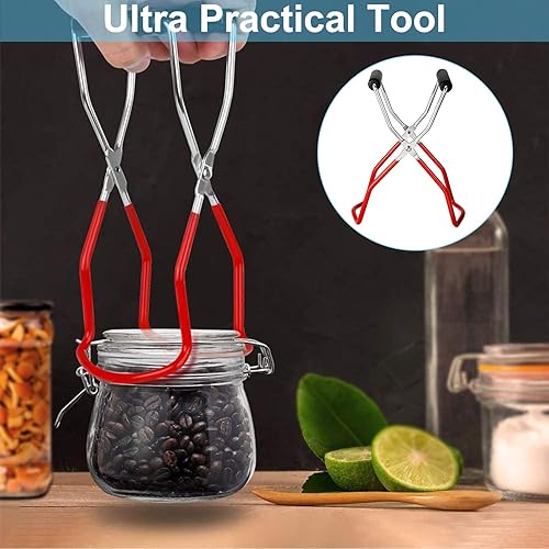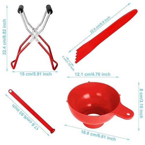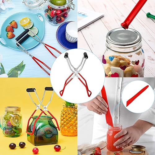 ASHYYDS779 L'ensemble D'outils de Mise en Conserve 4 pcs Verre Lève-Bocal Pinces Levage Bocal avec Poignées Caoutchouc Kit pour Conserves, et Pot Gelée Rouge M