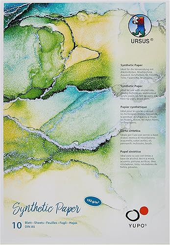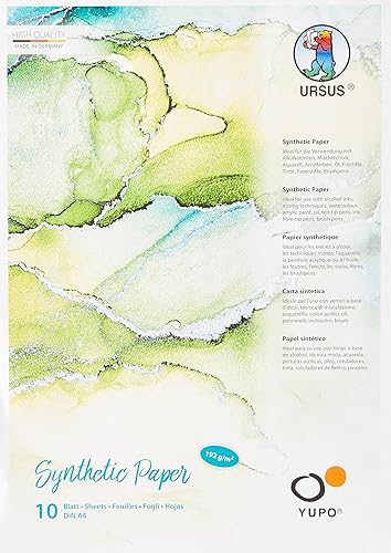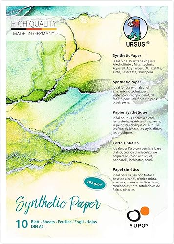 Ursus- Yupo Lot de 10 Feuilles de Papier synthétique A6 192 g/m² -Surface Lisse déchirure et à l'eau-Résistant à la lumière UV-Extrêmement résistant-100% Recyclable-Polyvalent, 16276400, Blanc