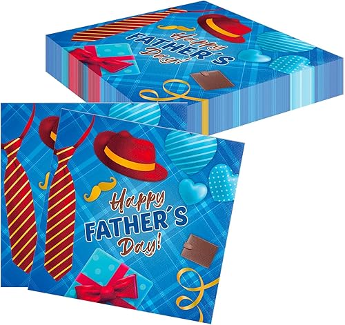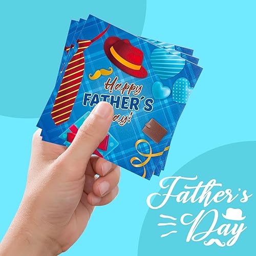 BHSTTNIXP Lot de 24 serviettes jetables pour la fête des pères - Bleu - 17 x 17 cm
