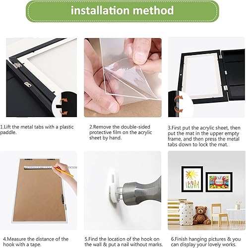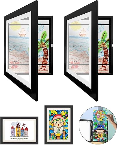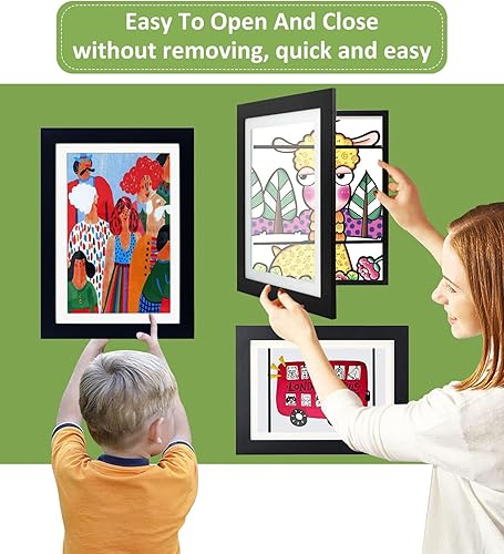 2Pcs Cadre Dessin Enfant à Changer,Muraux d'Affichage d'Œuvres Enfants Cadre Photo Artistique à Charnière Ouverture Frontale Cadre A4 en Bois Pour Dessin Enfant,Rangement d'images et Dessin,Noir