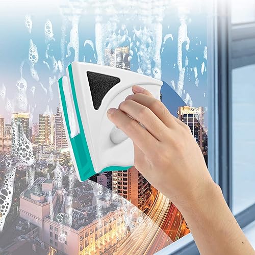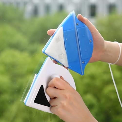SUQ Nettoyant pour Vitres Magnétique Double Face, Double Latérale Magnétique Outils de Nettoyage avec Corde Anti-Chute pour De Grande Hauteur et Fenêtres Vitrées de Voiture(Green)