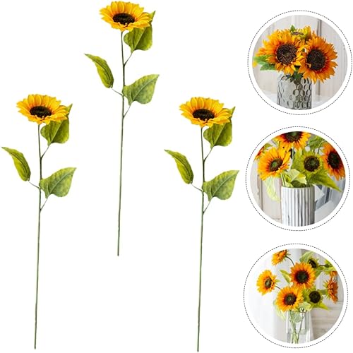 MAGICLULU 1 Jeu Fleur Artificielle De Tournesol Faux Tournesol À Longue Tige Décoration Accessoire D'ornement De Tournesol Mariage Grand Décor De Tournesols Réel Habit en Soie Jaune 3 Pièces