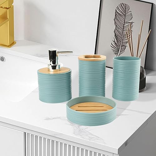 YWJLQH Ensemble de Salle de Bain 4 Pièces avec Porte-brosse à Dents et Distributeur de Savon, Bleu