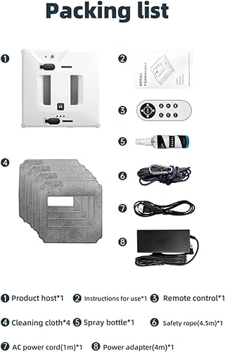 QJJML Robot Nettoyeur De Vitres Intelligent Machine À Nettoyer Les Vitres par Pulvérisation d'eau des Deux Côtés, 3000pa, Forte Aspiration Et Protection Contre Les Pannes D'Électricité - Télécommande