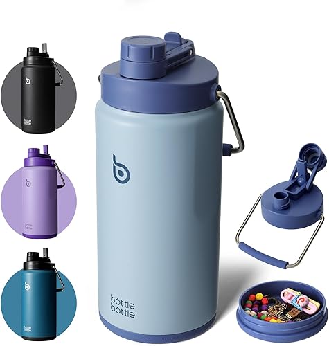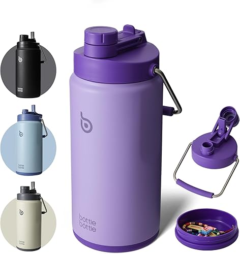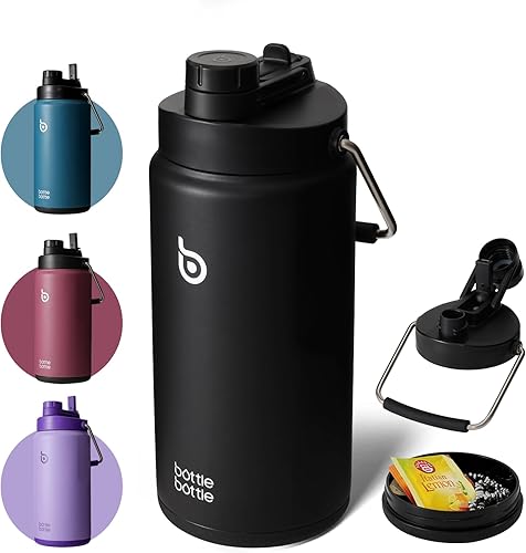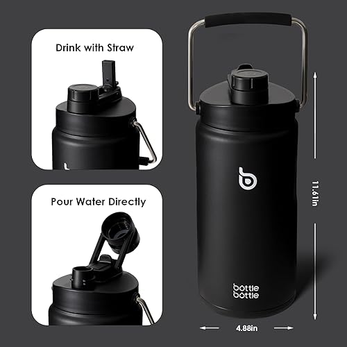 BOTTLE BOTTLE Bouteille isotherme de 1,8 l avec paille et couvercle à double usage en acier inoxydable pour l'entraînement et le sport,gourde isotherme avec poignée (rouge)
