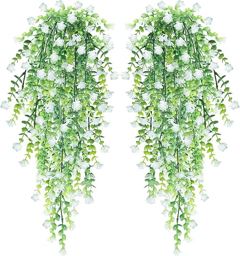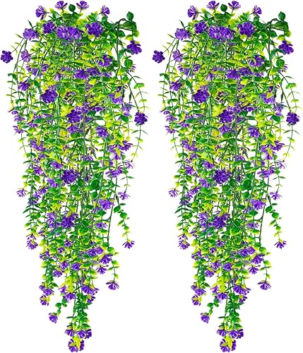 Lot de 2 plantes artificielles à suspendre - Plantes vertes en plastique - Décoration pour mariage, fête, balcon, chambre à coucher, cuisine, salon, bureau, rebord de fenêtre (violet)