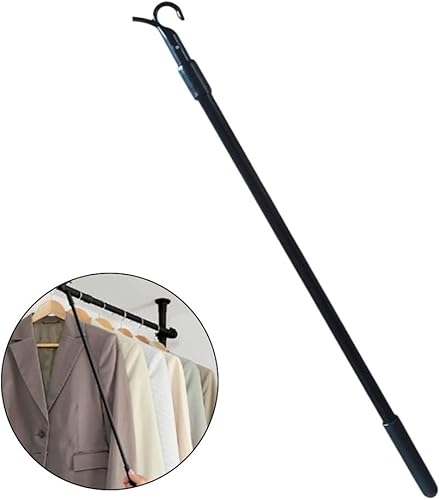 Jotekonoby Tige d'ouvre-fenêtre de toit réglable de 30 à 60 cm en alliage d'aluminium léger avec crochets pour fenêtres hautes, trappes noires