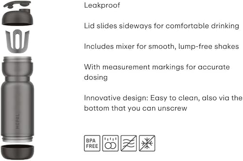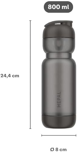 Mepal - Bidon de Sport Shake - Étanche - Mixeur et un gradueur inclus - Fond facile à nettoyer - Shaker proteine - 800 ml - Graphite black