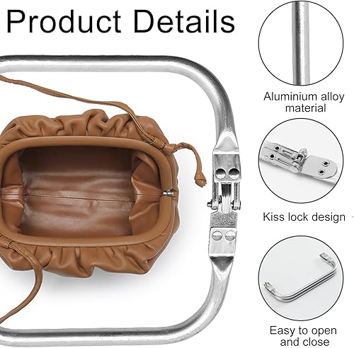 zoerbufan 20cm Cadre de Fermoir Sac à Main en Aluminium Cadre, Porte Monnaie de Forme Carrée d'Artisanat Kit de Remplacement, Poignée en Forme de U pour Sacs à Main DIY
