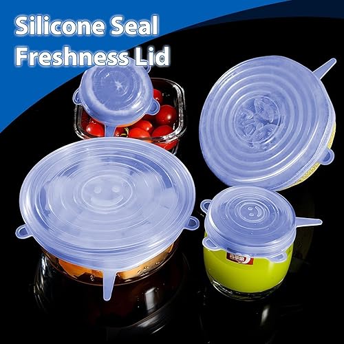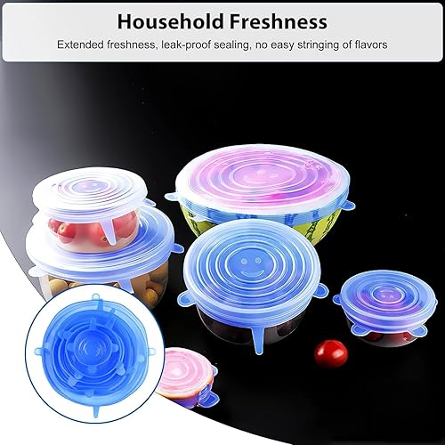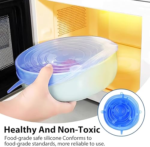 6 Pièces Couvercle Silicone Alimentaire Extensibles, Couvercle Boite de Conserve en 6 Tailles, Réutilisables pour Bols, Boîtes de Conserve et Pots de Yaourt, Rond et Étirable.