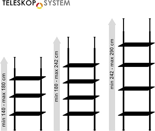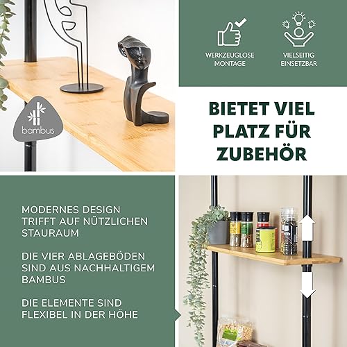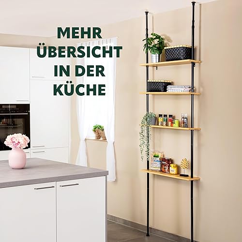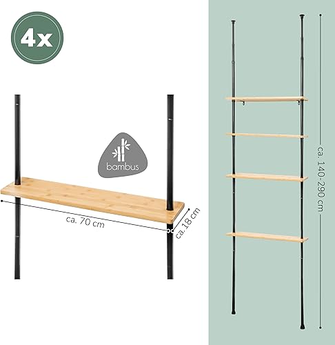 bremermann Étagère Murale télescopique avec 4 étagères en Bambou, Polyvalente dans Le Salon, Le Couloir, la Salle de Bain, Le Bureau ou la Cuisine (Noir)