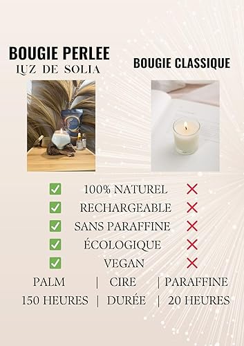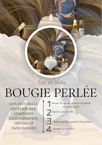 LUZ DE SOLIA Recharge Sachet 450g Perle de Cire + 20 mèches, Bougie Sable, Bougie Infini, Bougie Naturel, Poudre de Cire, Bougie Poudre