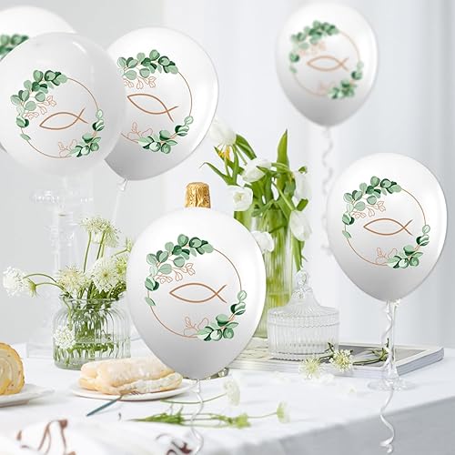 Bapteme, 20pcs Ballon Communion, Decoration Confirmation, Decoration Bapteme Garcon Fille, Ballon Confirmation avec Motif Poisson, Decoration Communion pour Baby Shower