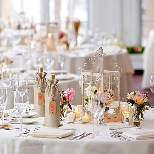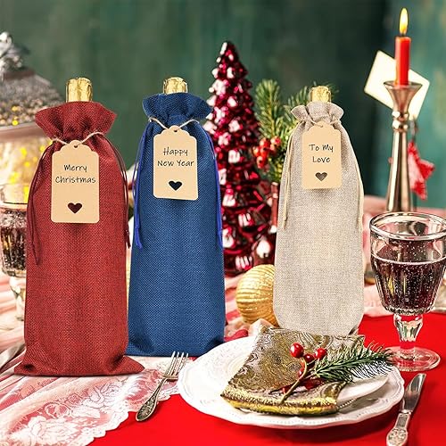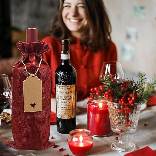 Lot de 12 sacs à vin en toile de jute réutilisables avec cordon de serrage et pendentif pour bouteilles de vin - Sacs cadeaux pour mariage et fête