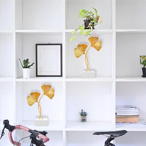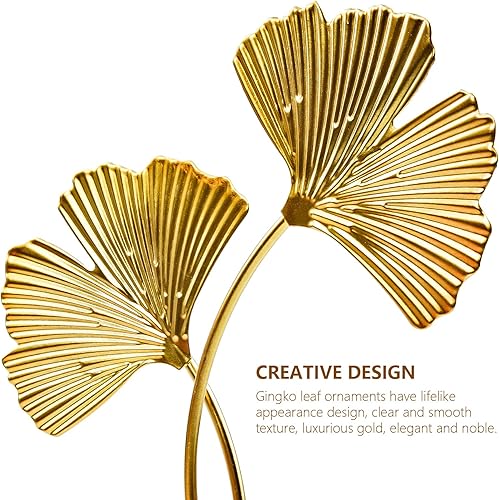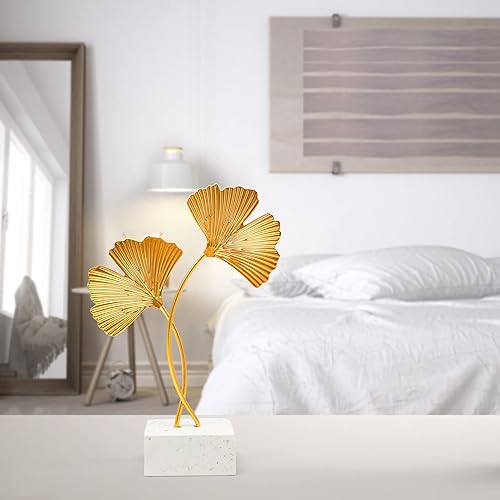 LTHERMELK Ornements en forme de feuille de ginkgo dorée, sculpture de décoration de bureau, statue moderne et créative pour décoration d'intérieur pour bureau, chambre, bibliothèque (doré)