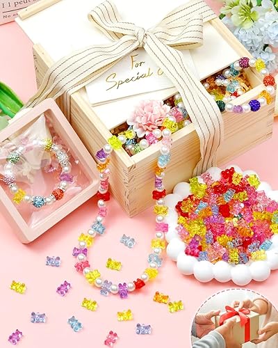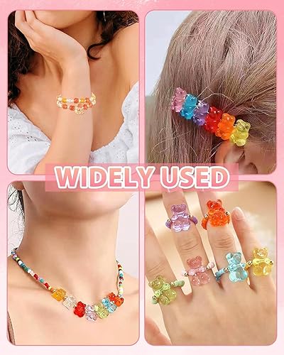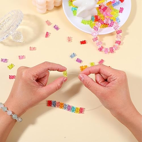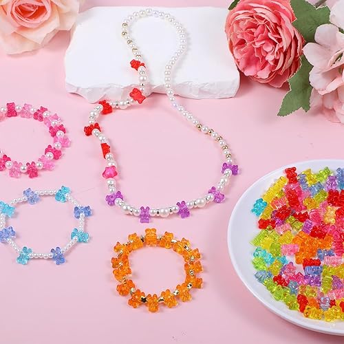 UCLEVER 200 perles en acrylique transparent ours, perles ours gommeuses multicolores pour bracelets, colliers et DIY, mignons charms ours pour création de bijoux