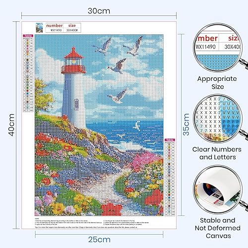 MAXBYE Fleurs Diamond Painting Kits pour Adulte, 5D Bord de Mer Diamond Art Kits Complet DIY Full Drill Artisanat Cristal Kit pour Débutant, Diamant Arts Crafts Maison Décor 30X40cm
