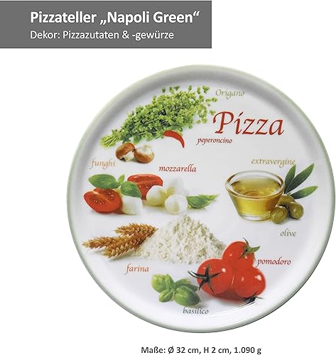 MamboCat Lot de 2 assiettes à pizza Napoli Green & Red I Ø 32 cm – Grand I 2 personnes I Assiette avec 2 motifs différents I Décorée I Pour pizzas ou présentation I Porcelaine