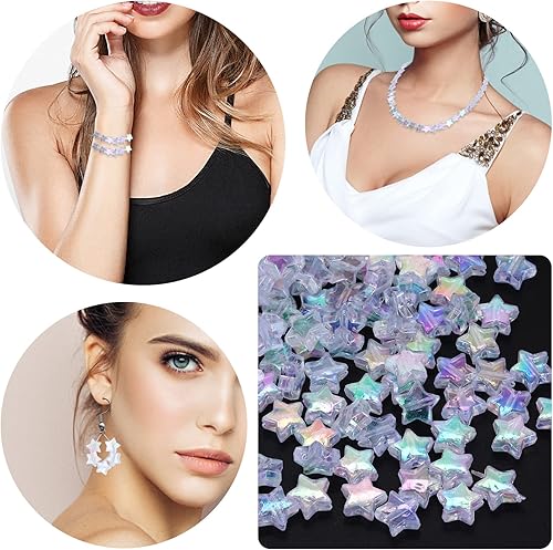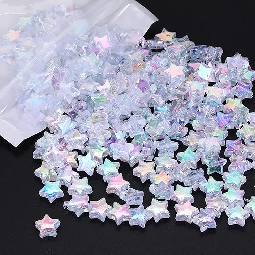 Sibba Lot de 220 perles en acrylique en forme d'étoile de 10 mm avec 1 rouleau de cordon coloré pastel pour loisirs créatifs fabrication de bijoux perles en plastique mignonnes pour collier bracelet