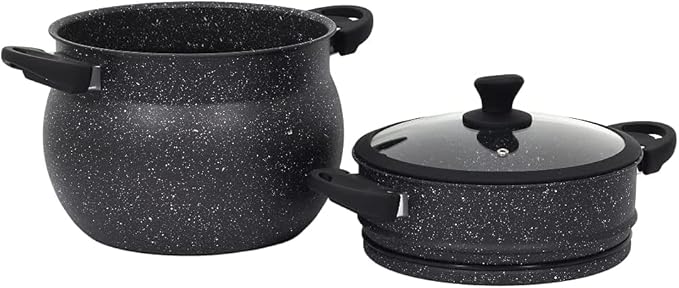 Haussmann Héritage Couscoussiers/Cuit Vapeur/Faitout26CM/8Litre -Revétement façon Pierre,Haute Qualité - Couvercle en Verre- Tous Feux Dont Induction…
