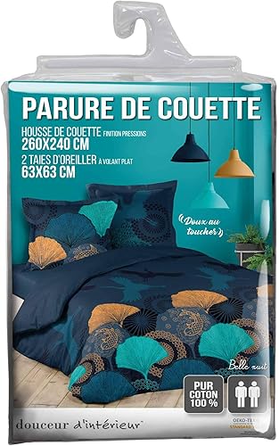 Douceur d'Intérieur, Parure 3 Pièces (260 x 240 cm) Belle Nuit, 100% Coton