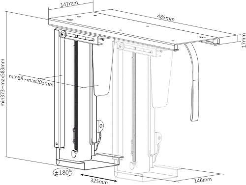 Maclean MC-885 B Support Universel pour Ordinateur de Bureau, PC, sous-Meuble, jusqu'à 10 kg, Extensible, pivotant à 360°