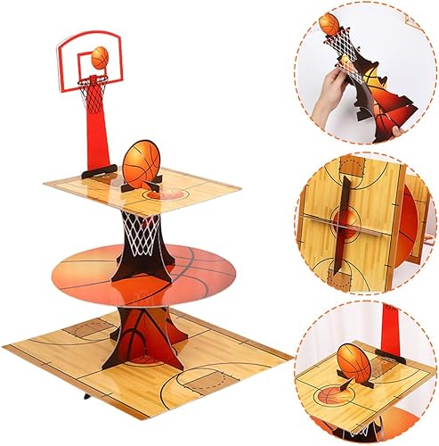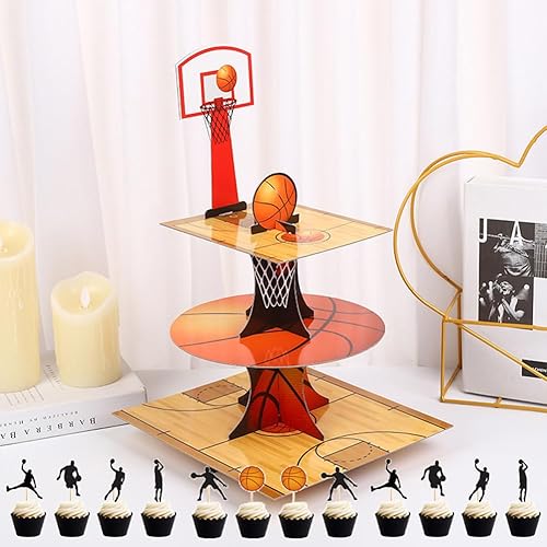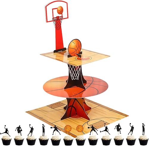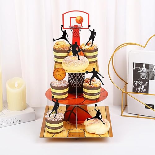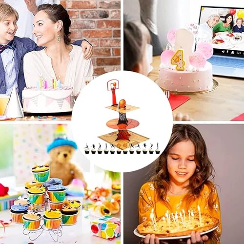 Présentoir à Cupcake à 3 Niveaux Basketball Décoration d'anniversaire Porte-Muffins en Carton pour Bébé Shower Enfants Fête Anniversaire Party à Thème 13 PCS