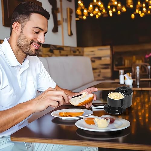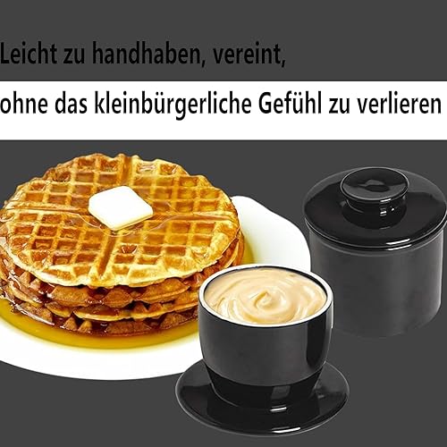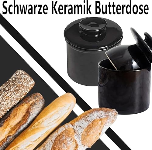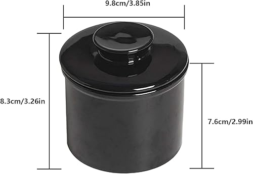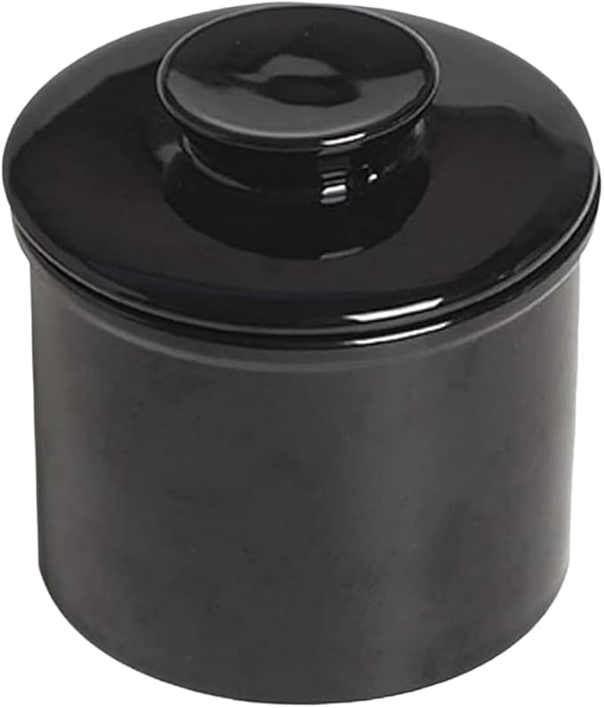 Beurrier français - En céramique - Avec couvercle rond - Refroidi à l'eau - Avec ligne d'eau - Pour beurre frais et tartinable - Noir