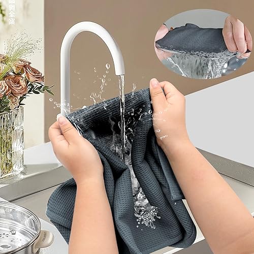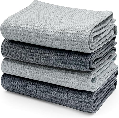 Torchons de Cuisine, Torchon Vaisselle de 45x65cm, Lot de 4 Essuie Main Cuisine 100% Coton, Torchons en Coton durables et Super absorbants