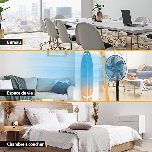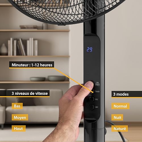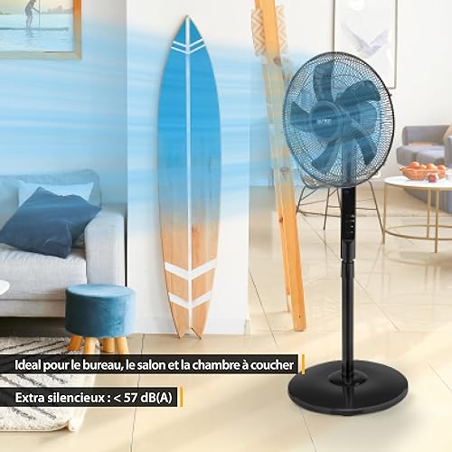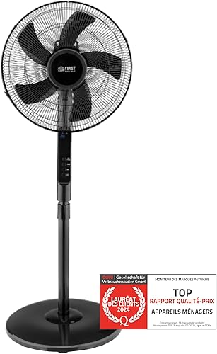 TZS First Austria Ventilateur sur pied télécommande - Ventilateur silencieux chambre refroidisseur d'air - Oscillation de 100° y compris fonction de minuterie - Fan pales & réglable en hauteur - noir
