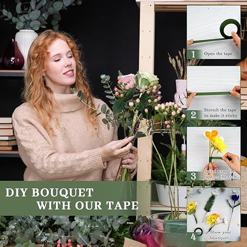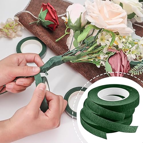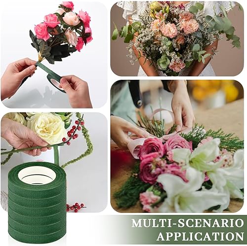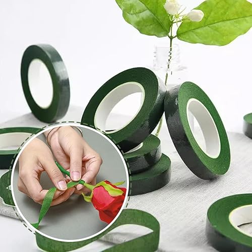 KUMSODE Lot de 6 Ruban de Fleuriste - Vert Foncé Rouleaux de Ruban Adhésif en Papier Floral Rubans de Fleuriste Bande de Fleur pour Bouquets de Fleurs pour Travaux Manuels