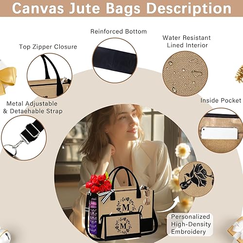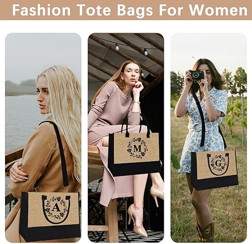 Adoryoung Sacs fourre-tout personnalisés en toile de jute avec initiale monogrammée pour femme, cadeaux pour femmes