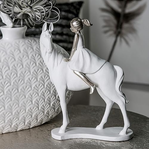 Casablanca Figurine Fille sur Cheval 25 cm Blanc argenté Fille sur Cheval Sculpture
