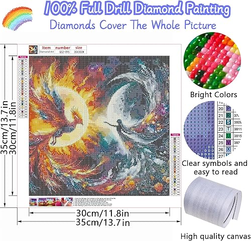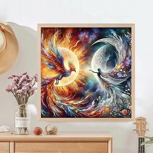 Diamond Painting 5D Phoenix de feu, kit de peinture diamant rond coloré faire soi-même, peinture diamant lune, kit d'art diamant à faire soi-même pour adultes, décoration murale pour la maison 30x30cm