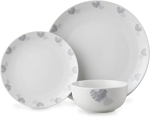 Lewis's Service de table 12 pièces en marbre - 4 assiettes plates, 4 assiettes à dessert, 4 bols, passe au micro-ondes et au lave-vaisselle - Porcelaine de haute qualité