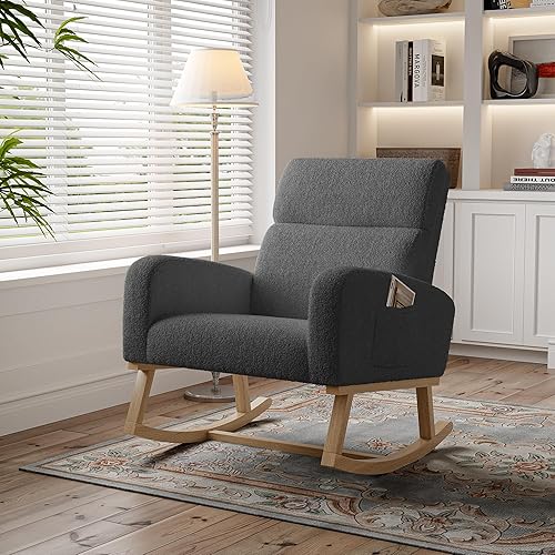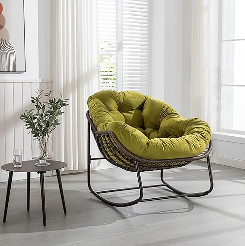 Julyue Papasan Fauteuil à bascule d'extérieur - Chaise de relaxation - Fauteuil à bascule - Fauteuil à bascule rembourré - Charge maximale : 113 kg - Pour salon, jardin, balcon - Vert olive