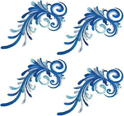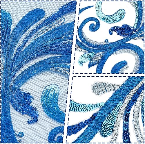 GOMAKERER 2 paire D'Appliques en Dentelle Brodée à Paillettes Patchs en Dentelle à Paillettes Brodés Bleus à Coudre pour Robe de Mariée Vêtements Chapeau Jean Appliques à Coudre, 330x152x1mm