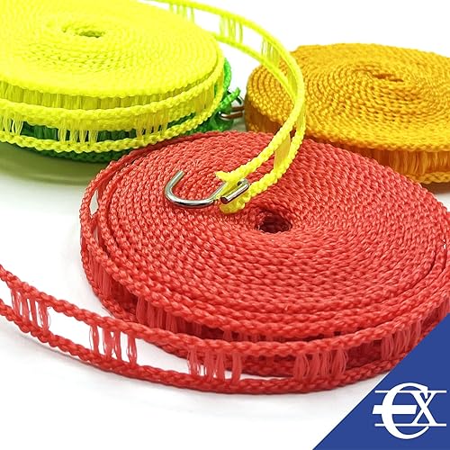 EUROXANTY Corde à Linge | Fil à Linge Plat | Corde à Linge pour Extérieur et Intérieur | Corde à Linge Compatible avec Cintres | Système d’Étendage Facile à Porter | 10 m | Rouge
