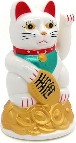 Chat porte-bonheur chinois (Maneki-neko) Starlet24 - Feng Shui, Plastique, Weiss, 11 cm
