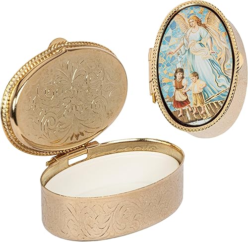 NKlaus étui métallique or boîte ovale ange gardien enfants sur pont 5x3,5cm chapelet 2546
