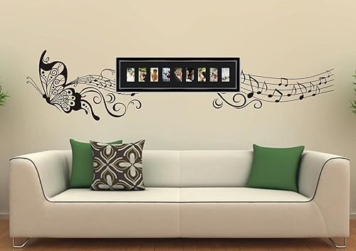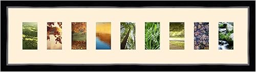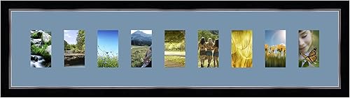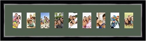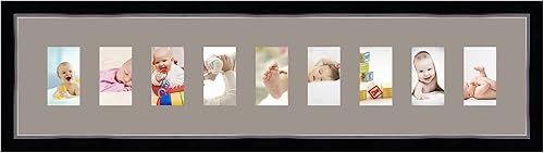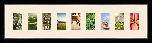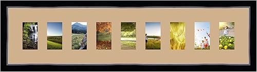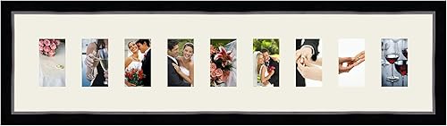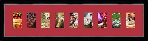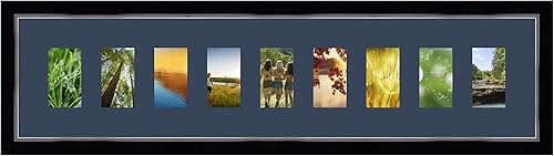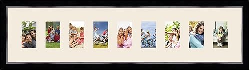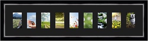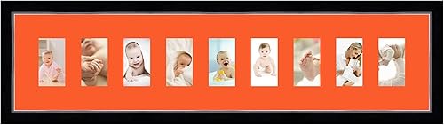 Cadres Photos pêle mêle multivues Orange 9 Photo(s) 8x13 Passe Partout, Cadre Photo Mural 98x23 cm Noir avec Filet Argent, 3.4 cm de Largeur