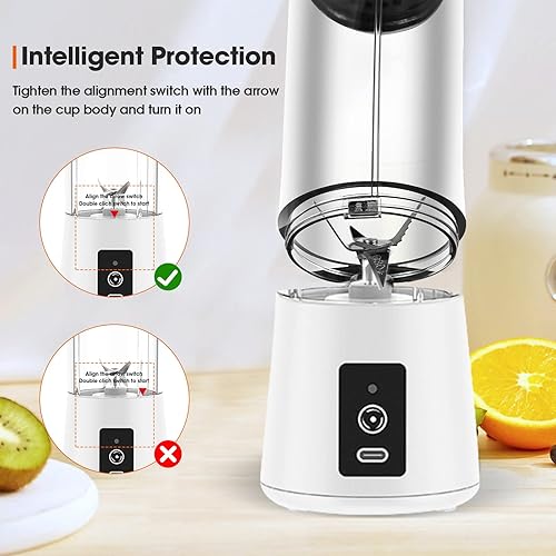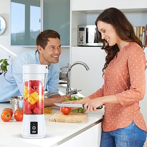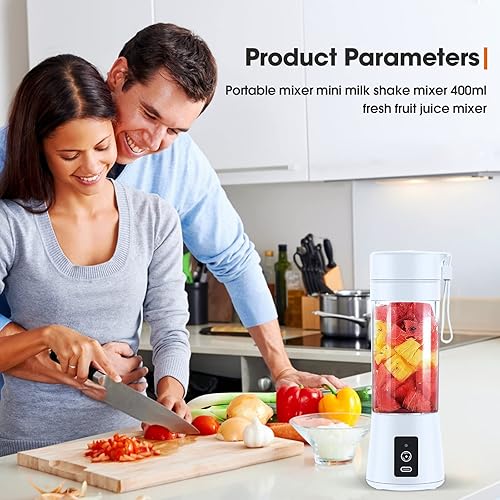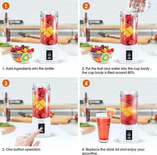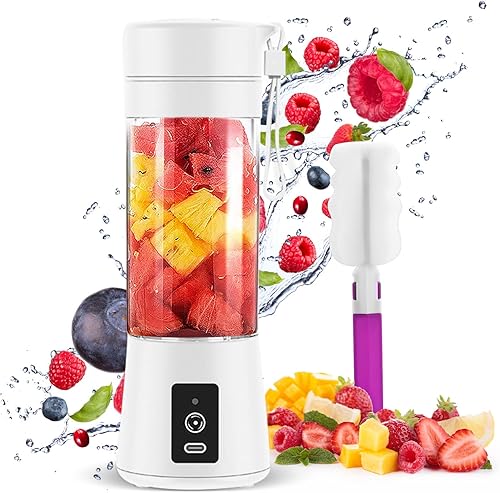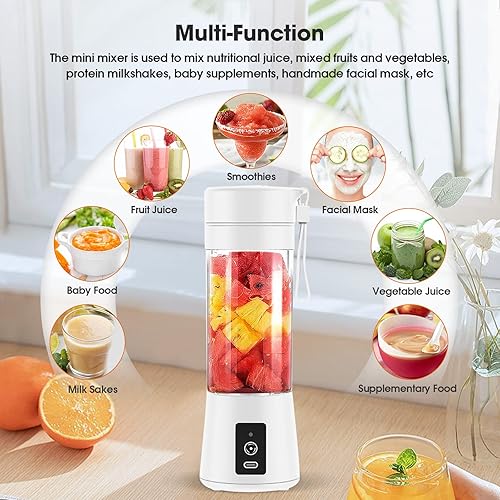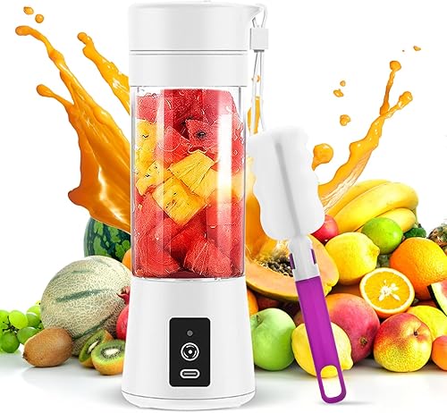 Mixeur Portable pour Smoothie, 380ml Mixeur Portable pour Shakes et Smoothies Mini Mixeur Smoothie, avec Bouteille en Verre, Rechargeable par USB Blanc