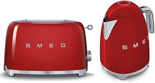 Smeg TSF01RDUK KLF01RDUK | Ensemble grille-pain 2 tranches style rétro années 50 et bouilloire en rouge